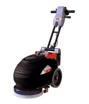 BKF Baby E to najmniejsza zmywarka do posadzek prowadzona przez operatora, zasilana elektrycznie.