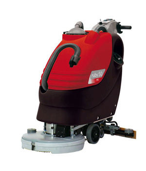 Zmywarka do posadzek zasilana elektrycznie, przeznaczona do codziennej pielęgnacji oraz gruntownego doczyszczania powierzchni w średnich i dużych obiektach handlowych i przemysłowych.