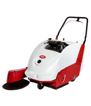 Ręczna zamiatarka do sprzątania małych powierzchni przemysłowych, zarówno wewnętrznych, jak i zewnętrznych.