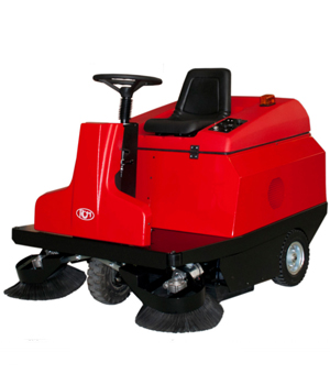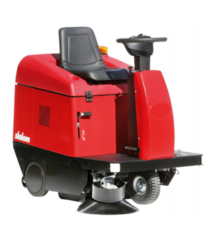 Slalom to mała zamiatarka przemysłowa z siedzeniem dla operatora, zasilana elektrycznie.