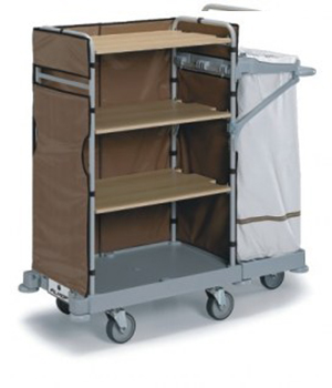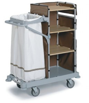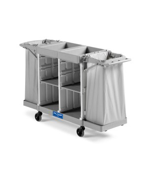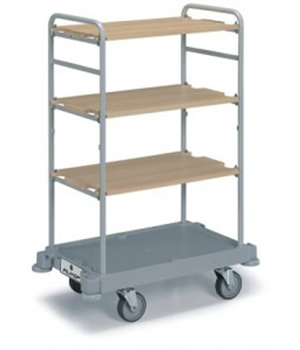 Wózek serwisowy Morgan Hotel 600 oparty jest o małą podstawę z kółkami o średnicy 125mm, 2 pionowe ramki